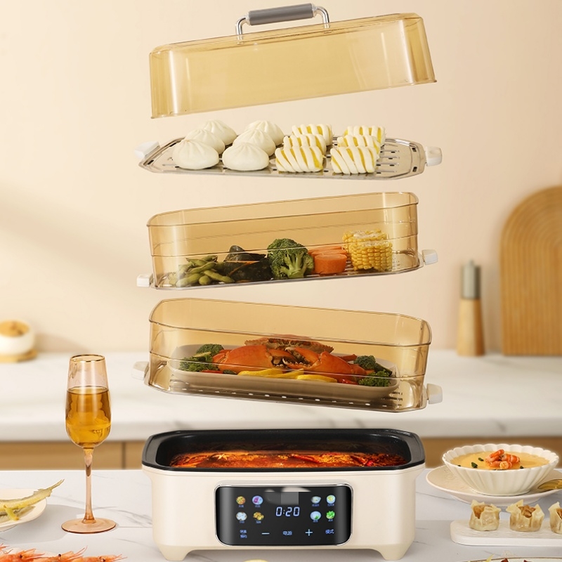 PP Material 3 layers food steamer Wholesale Kitchen Cookware Cooking Electrical 3 Layers Multi Purpose Electric