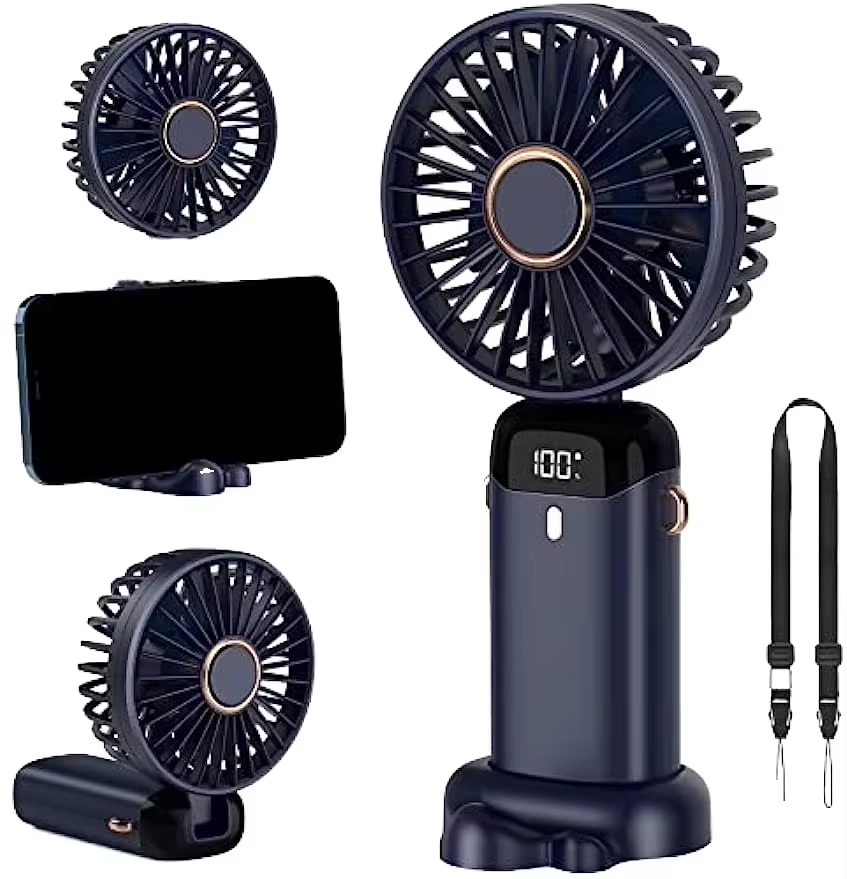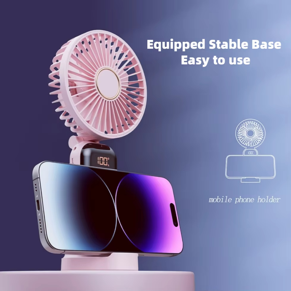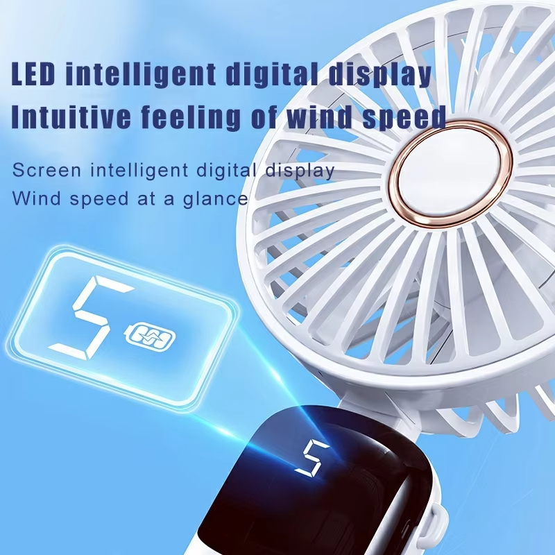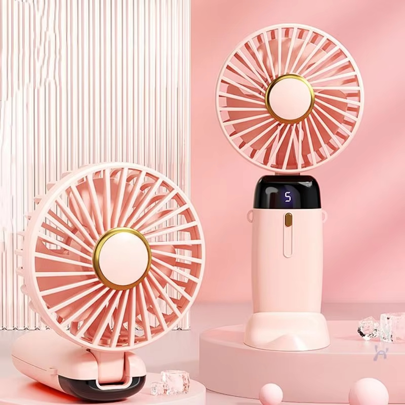 Top Selling Rechargeable Mini Handheld Fan Folding LED Display Fan with Aromatherapy Port Desktop Fan with Holder