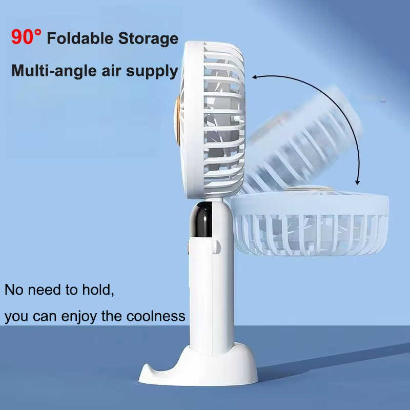 Top Selling Rechargeable Mini Handheld Fan Folding LED Display Fan with Aromatherapy Port Desktop Fan with Holder