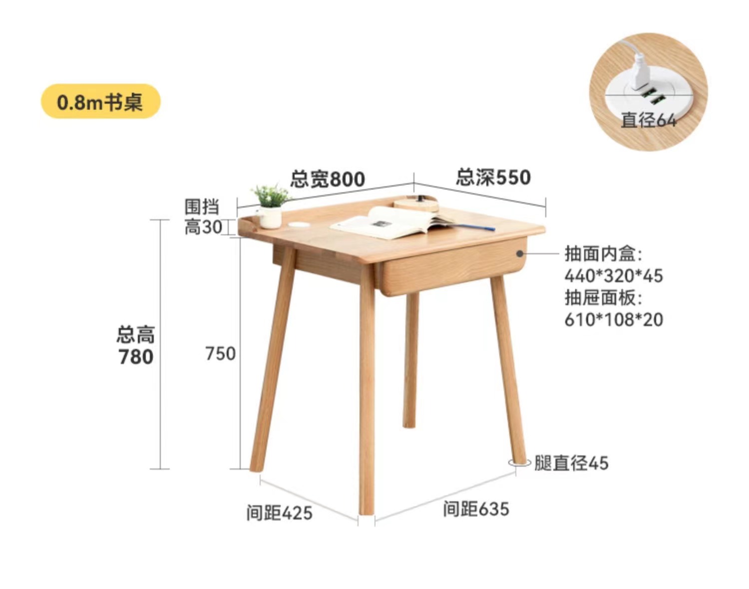 Nordic all wood modern simple oak desk